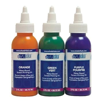 Yudu inks are water based, nontoxic, and uncomplicated to clean up, so you can invest your time creating, not cleaning. They are ideal for apparel and other fabric items and supply fantastic coverage for opaque images. Apparel with Yudu inks can be washed once the inks have been adequately heat set, and the inks are long lasting. Contains three ounce bottles of green, orange, and purple ink.